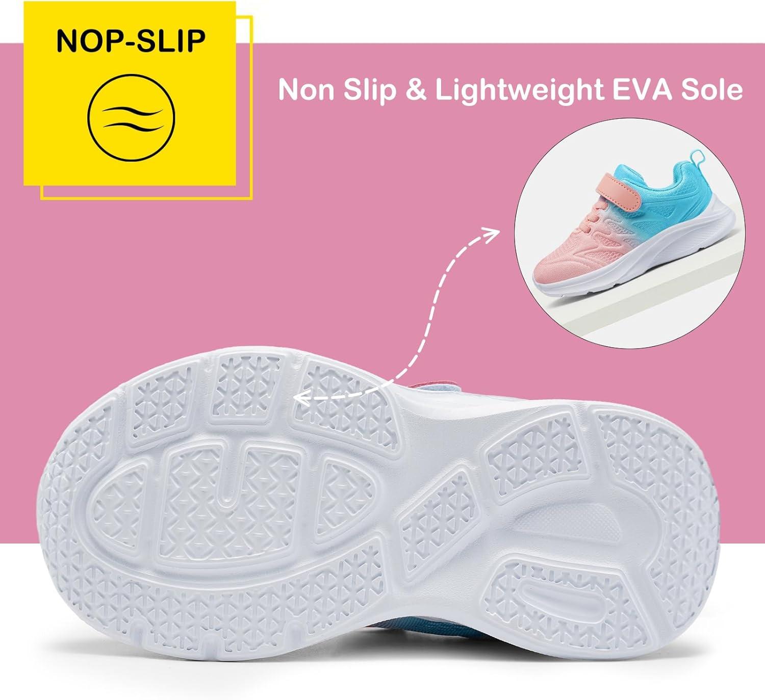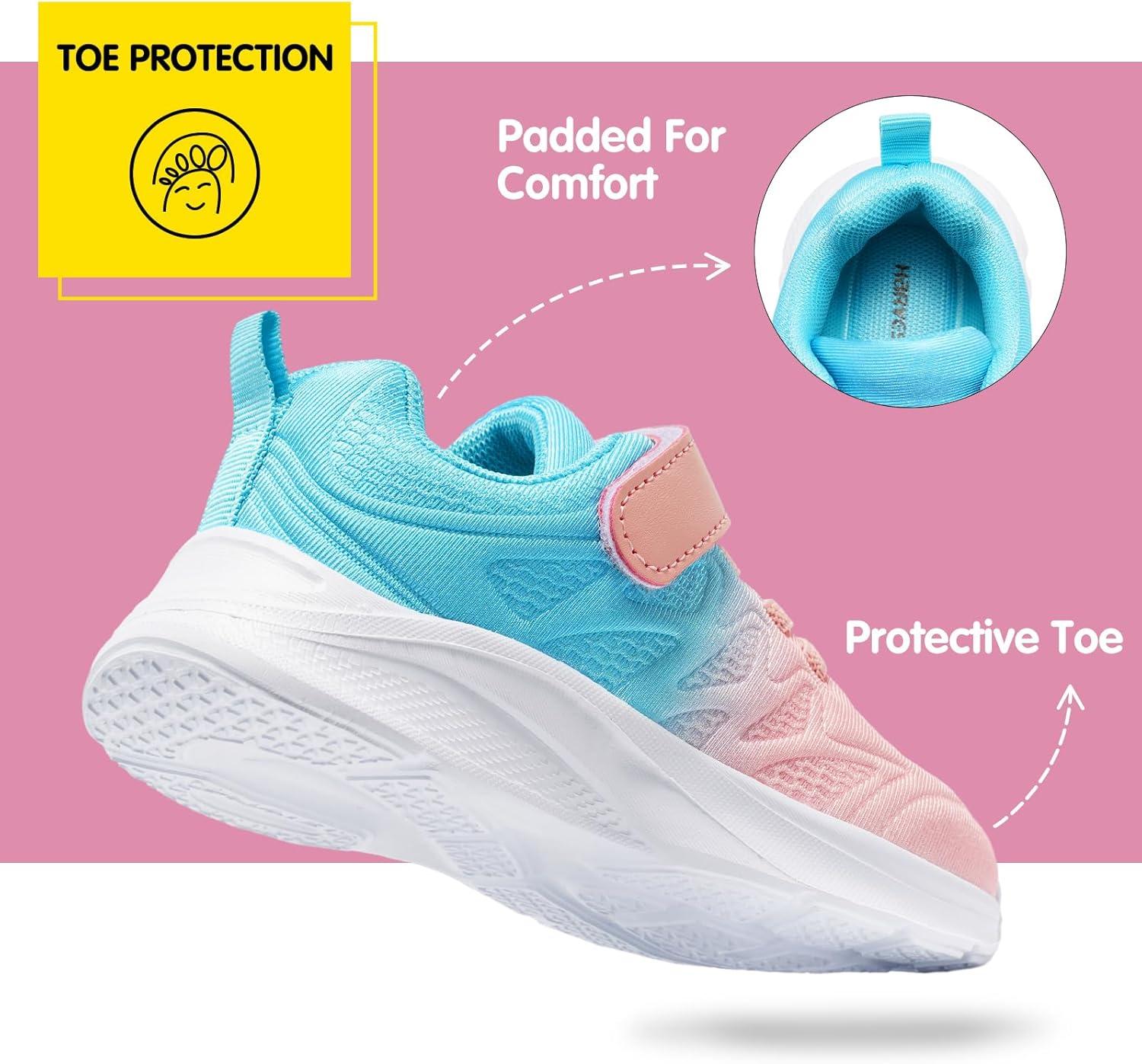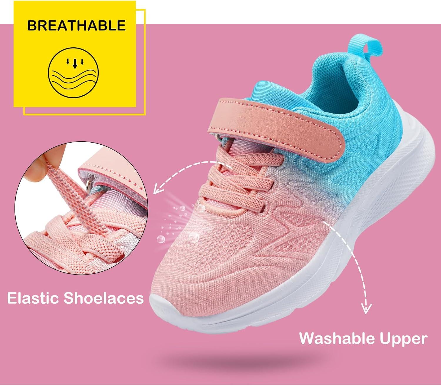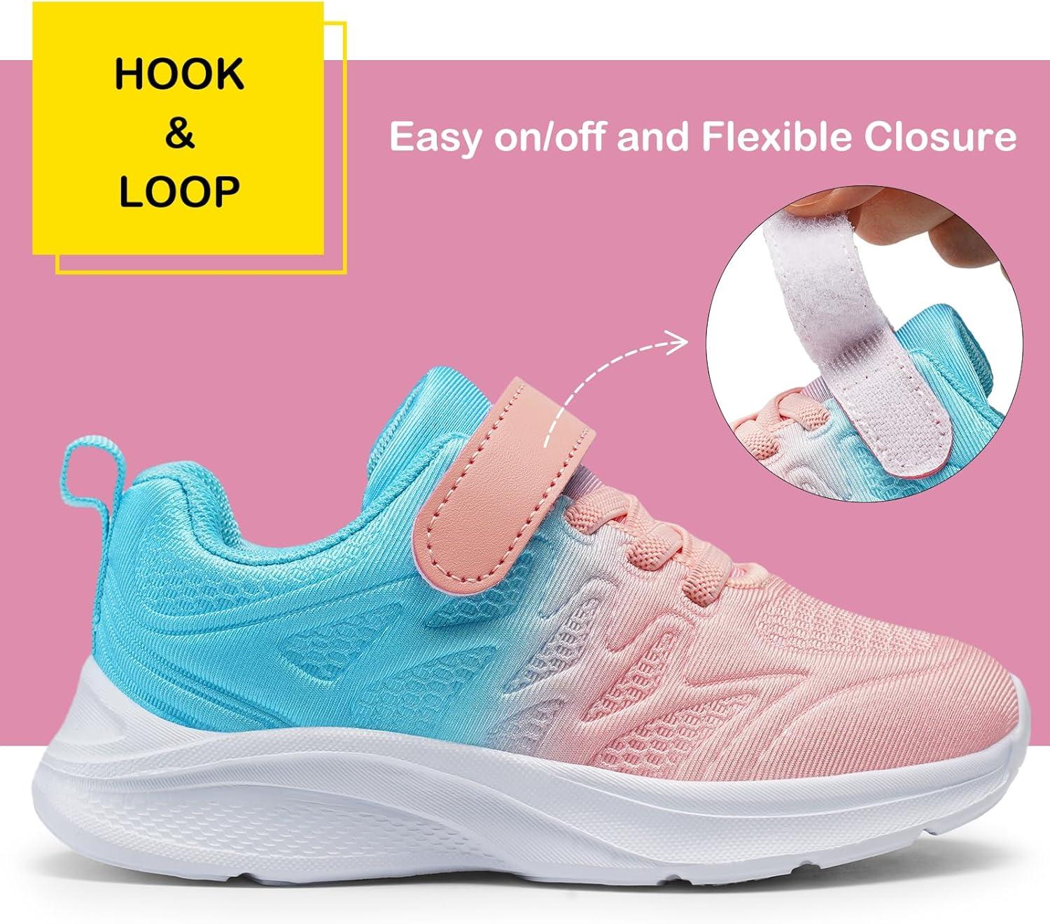 Harvest Land Toddler Glitter Tennis Shoes Slip On Boys Girls Sneakers Casual Running Shoes Woven Breathable with Soft Soled Sports Hook-Loop Outdoor Shoes(Gradient Pink)