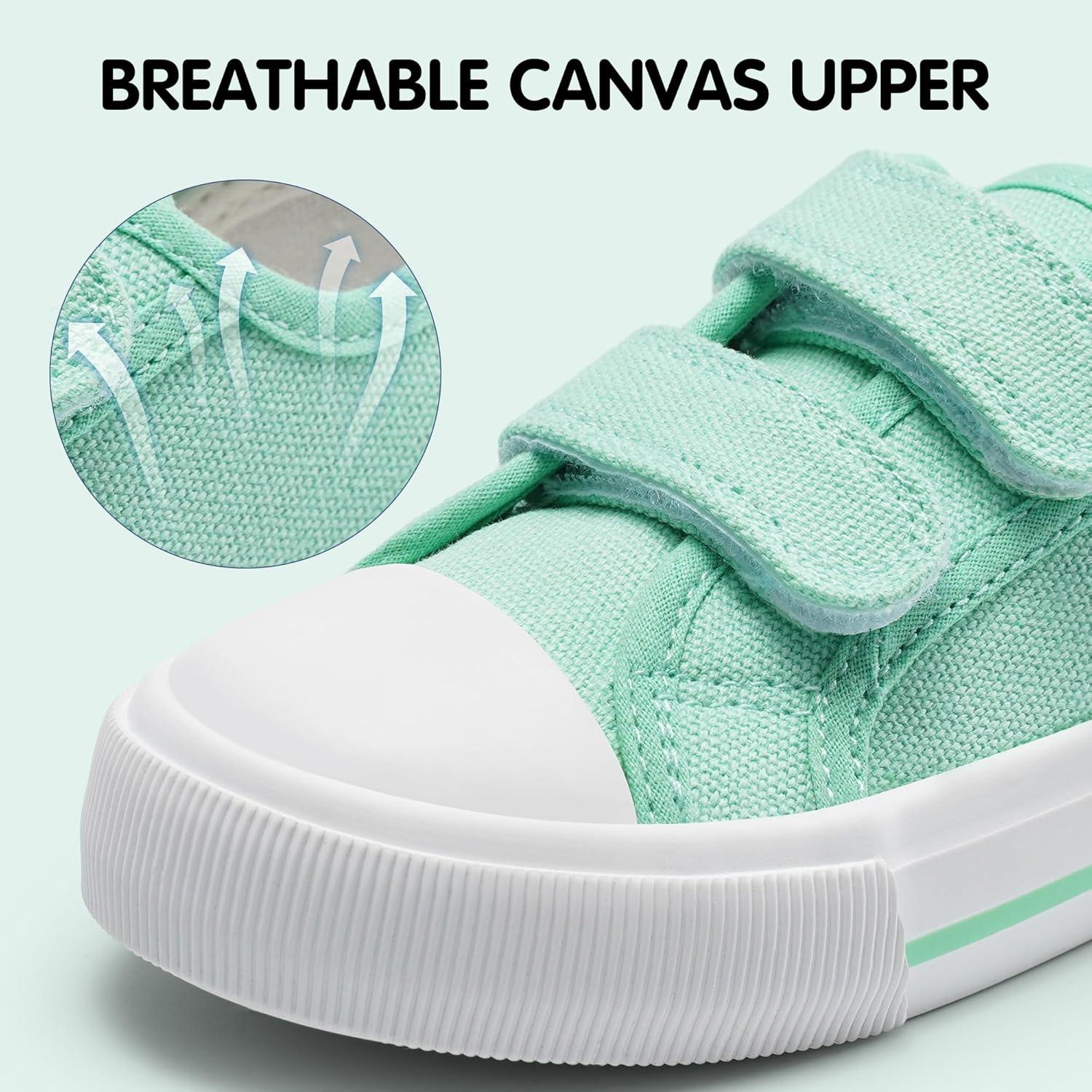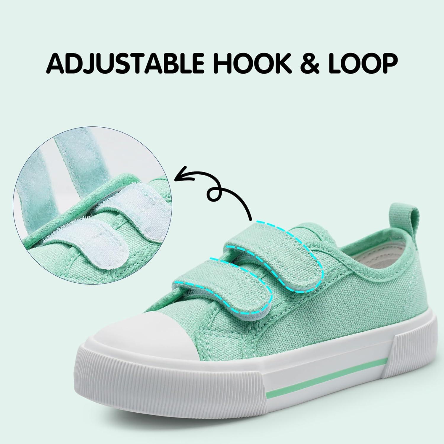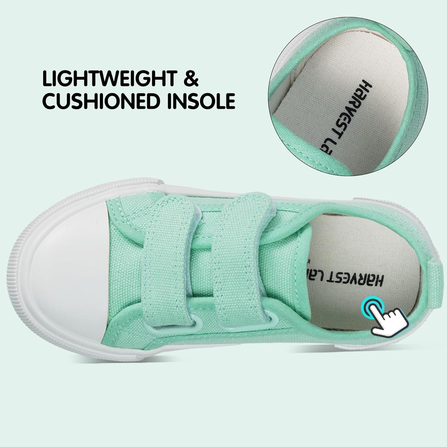Harvest Land Toddler Kids Canvas Sneakers for Boys and Girls – Casual Walking Shoes with Double Hook-and-Loop Straps, Non-Slip Lightweight Trainers for Baby & Little Kids(Green)