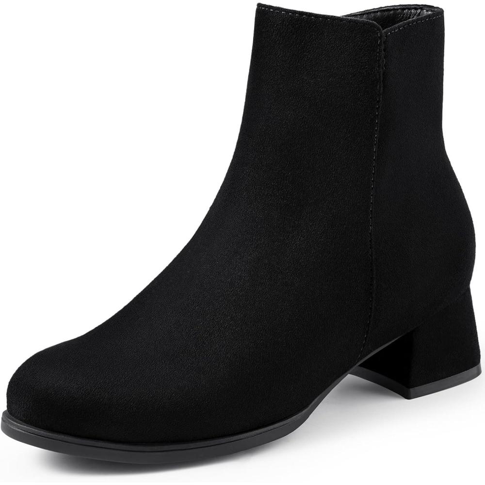 Harvest Land Women’s Ankle Boots Low Heels Suede Chunky Fashion Booties(Black)